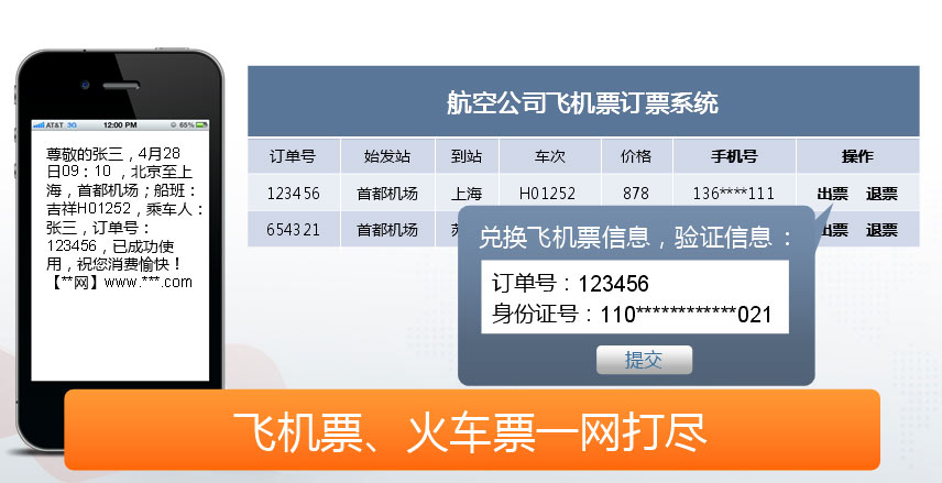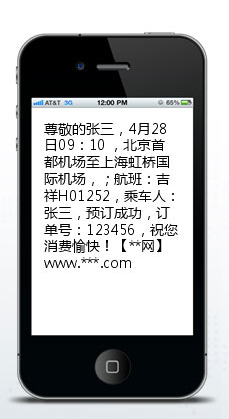 消费者在网上下单,收到订单号、航班信